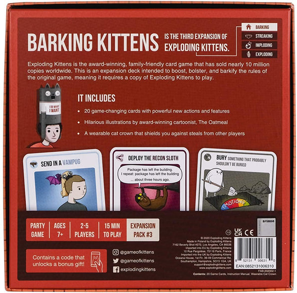 - Includes a pair of Barking Kittens cards that allow players to combine their hands to one's advantage and the other's disadvantage.