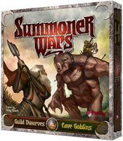 The Battle Ignites in the Mountains of Sorrow. The Mountains of Sorrow are aptly named, for they have been the site of the unending clash between Goblin and Dwarf. The Cave Goblins seek merely to throw themselves upon any foe with the will to fight. The Guild Dwarves sit in their mountain halls, jealously guarding their ancient riches. But with the discovery of the Summoning Stones comes a new kind of combat, and now these two great races will help set off the War for Itharia. Summoner Wars: Guild Dwarves vs. Cave Goblins gives players everything they need to join the War for Itharia, as either of these great races. Will you play the Guild Dwarves, whose knowledge of siege warfare knows no rival? Or will you play the Cave Goblins, and swarm your foe with your fanatical hordes?